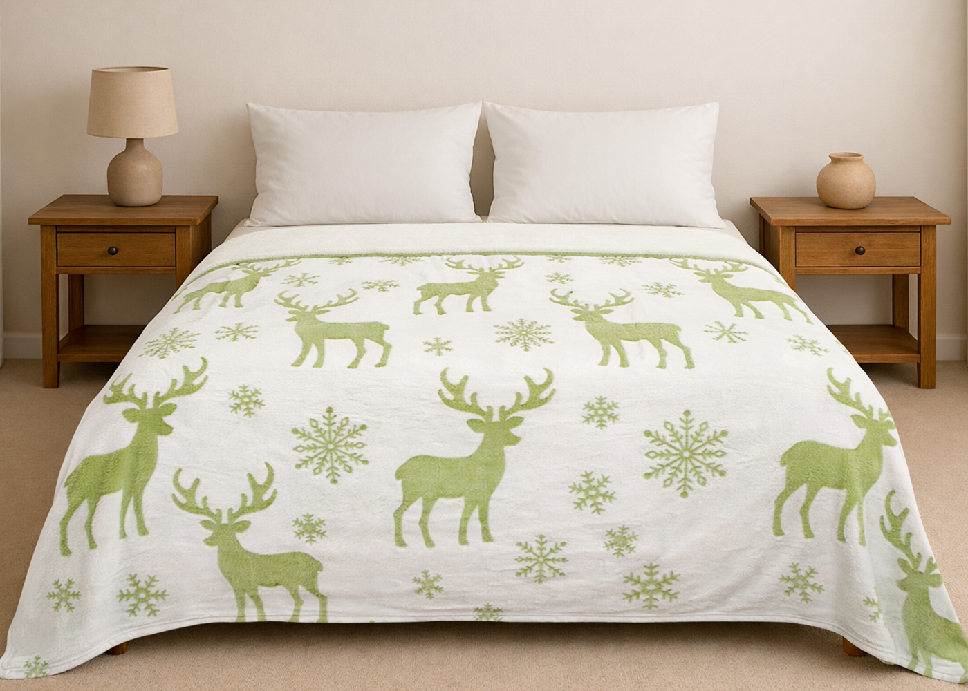 Cobertor Nevado Matrimonial Ciervo Verde