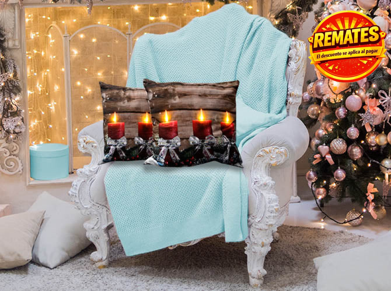 Cojín Con Luz Navideño Velas Cojin